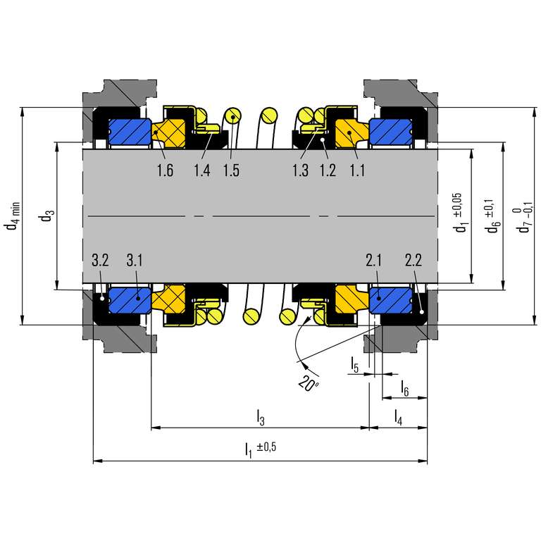 Positionene und Bezeichnungen wie bei BT-PN. Doppeldichtung in Back-to-Back-Anordung basierend auf BT-PN oder BT-PNL.